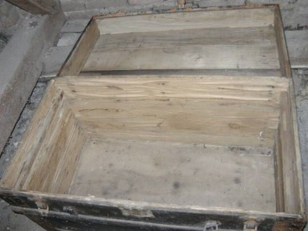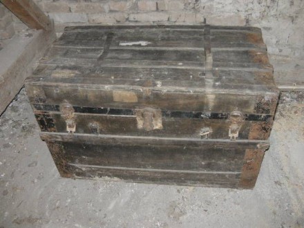 ANTIKE TRUHE - REISEKOFFER; VOLLHOLZ!